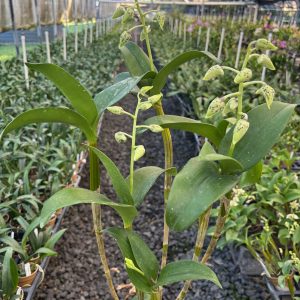 Den. Spotted Poni – (Den. Roy Tokunaga x Little Atro). The season for this fantastic Latouria hybrid is kicking off, and we’re harvesting mature plants in 4″ pots with over four spikes each. These long-lasting beauties are bound to impress.